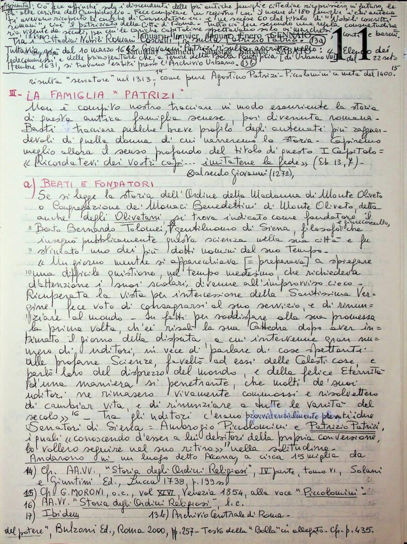risulta “senatore” nel 1313; come pure Agostino Patrizi-Piccolomini a metà del 1400.