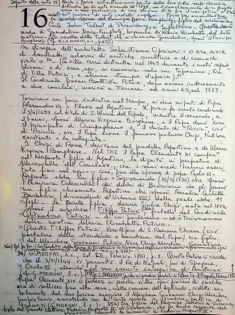 su disegno dell’architetto Sebastiano Cipriani = «era ricca di boschetti, adorni di antiche sculture e di comodi viali». (La villa verrà distrutta nel 1849 durante i moti repubblicani e di essa, oggi, si conserva solo un toponimo: Via di Villa Patrizi, e alcune stampe d’epoca).
